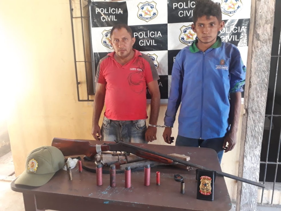 Pai e filho presos por cárcere privado e porte ilegal de arma de fogo em Alenquer (Foto: Polícia Civil Alenquer/Divulgação)